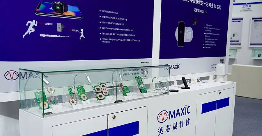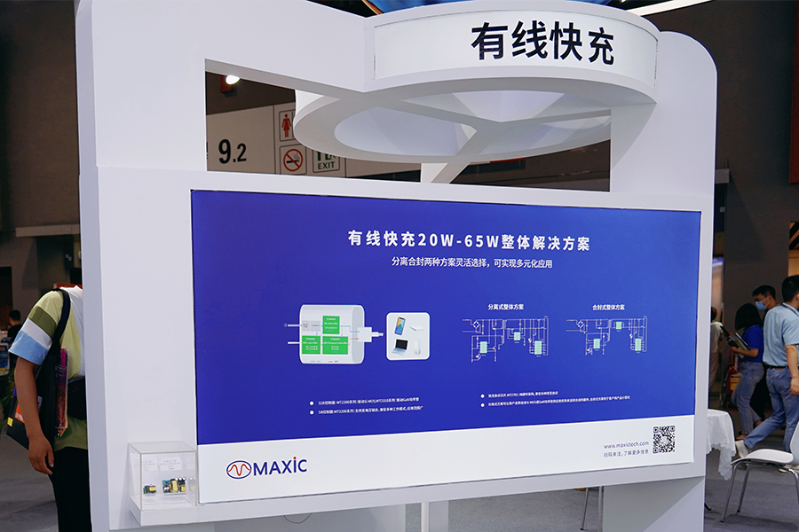 有線快充和信號鏈展區 展出美芯晟最新研發產品,有線快充20W-65W整體解決方案和全集成超低功耗光學接近檢測傳感器MT3101。