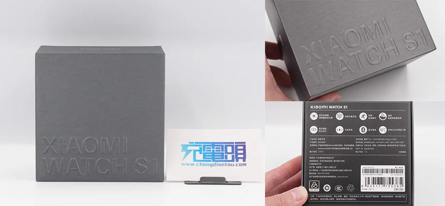產(chǎn)品包裝盒趨于立方體,整體為灰色基調(diào),棱角分明,風(fēng)格簡(jiǎn)約。包裝盒頂部壓印產(chǎn)品名稱——XIAOMI WATCH S1。包裝盒天地蓋設(shè)計(jì),底部貼有產(chǎn)品銘牌,印有產(chǎn)品8大賣點(diǎn)、參數(shù)以及商家信息等,生產(chǎn)商為龍旗電子(惠州)有限公司,產(chǎn)品還通過了CCC認(rèn)證。