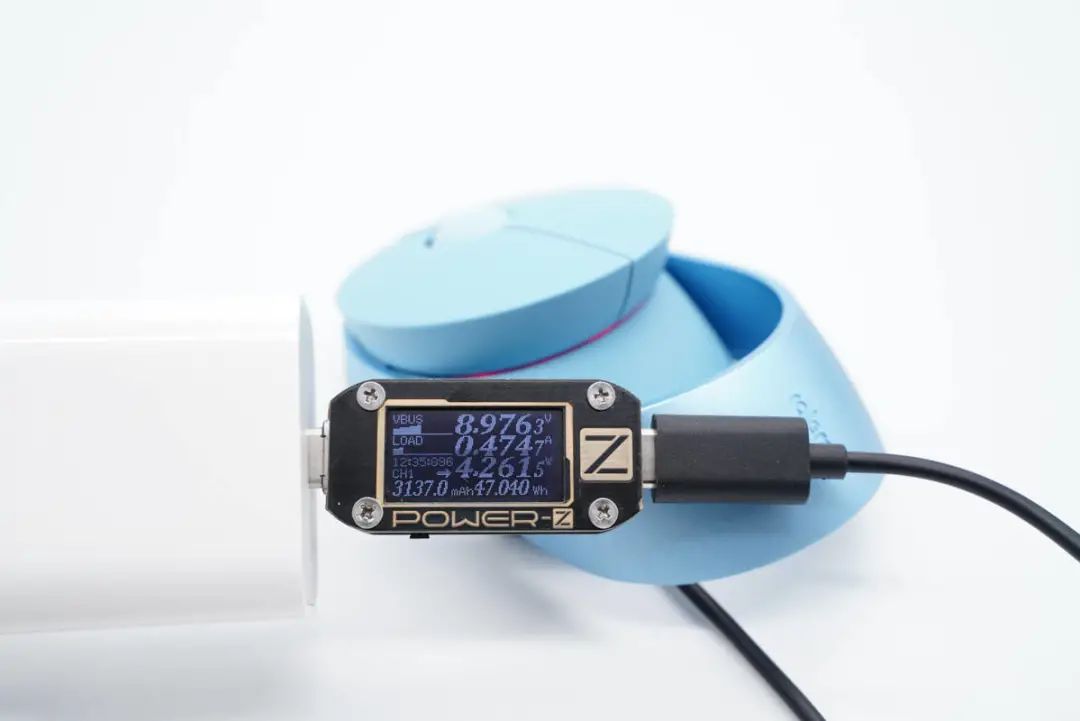 使用ChargerLAB POWER-Z KM001C可以測得此時無線充電輸入功率為8.98V 0.47A 4.26W。