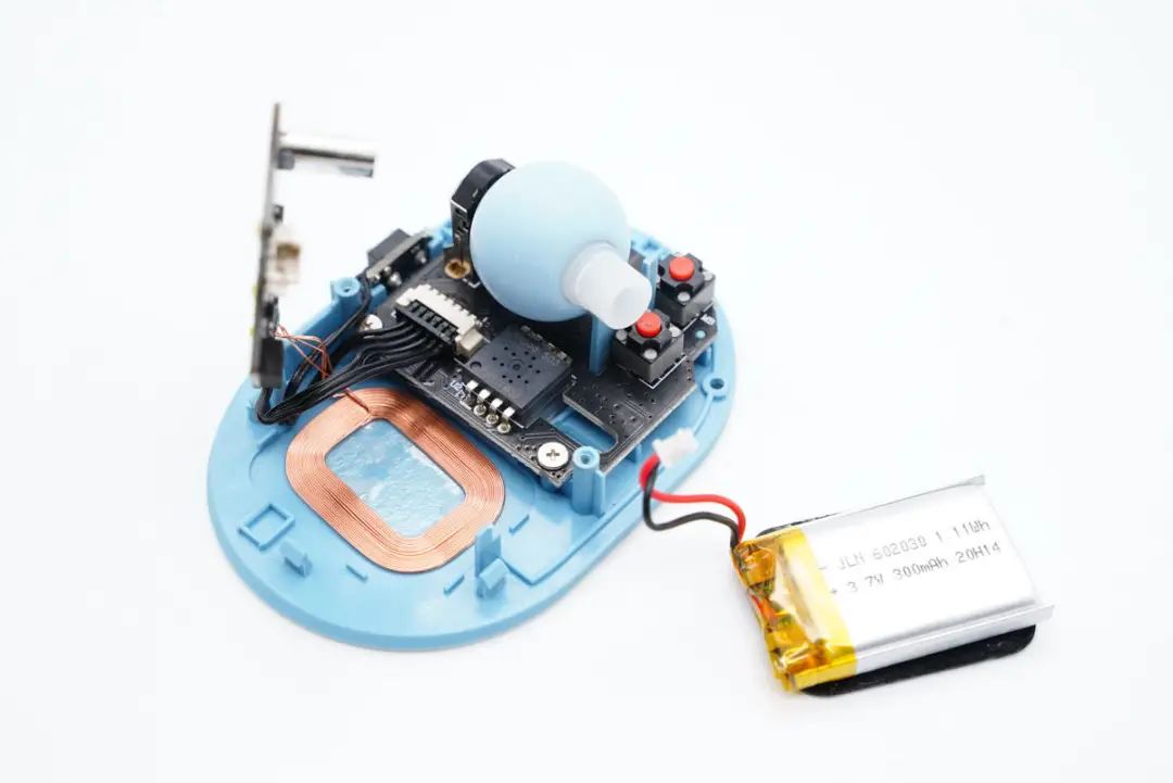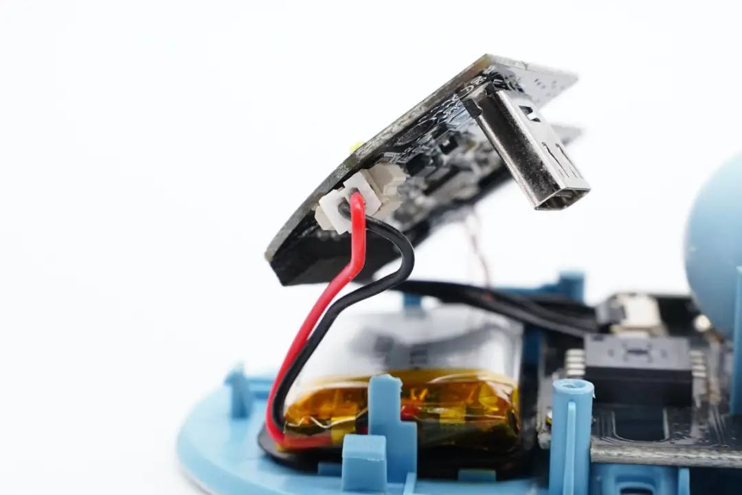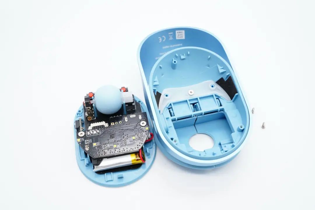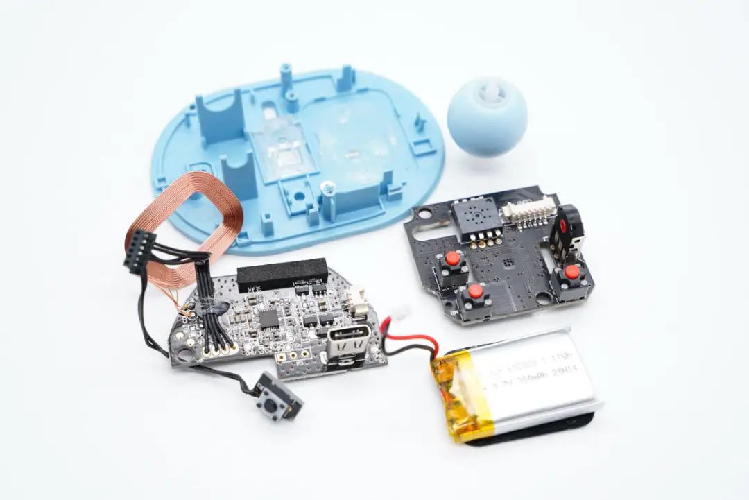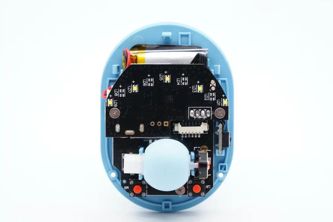 鼠標內部采用兩塊PCB板連接設計,PCB板使用螺絲固定。