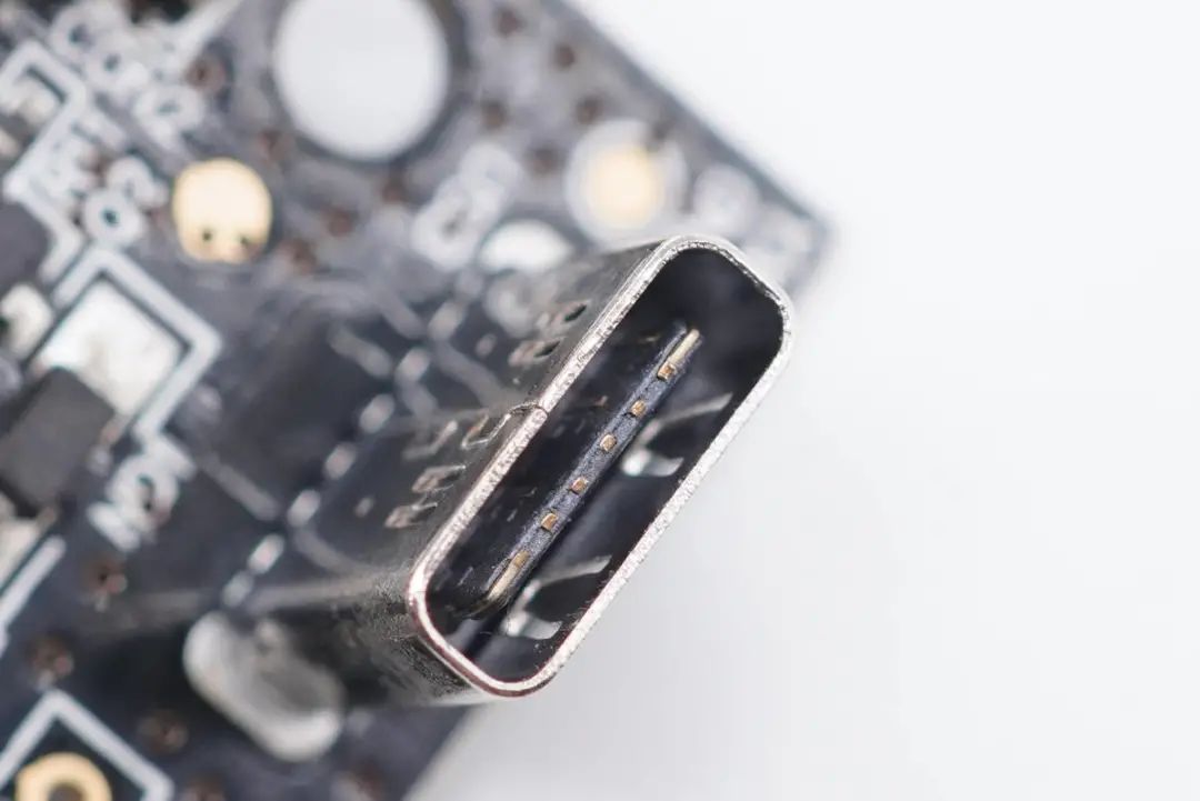 小板正面一覽,垂直焊接USB-C輸入母座,右側是電池插座,左側連接導線和無線充電線圈,中心是無線充電接收芯片。