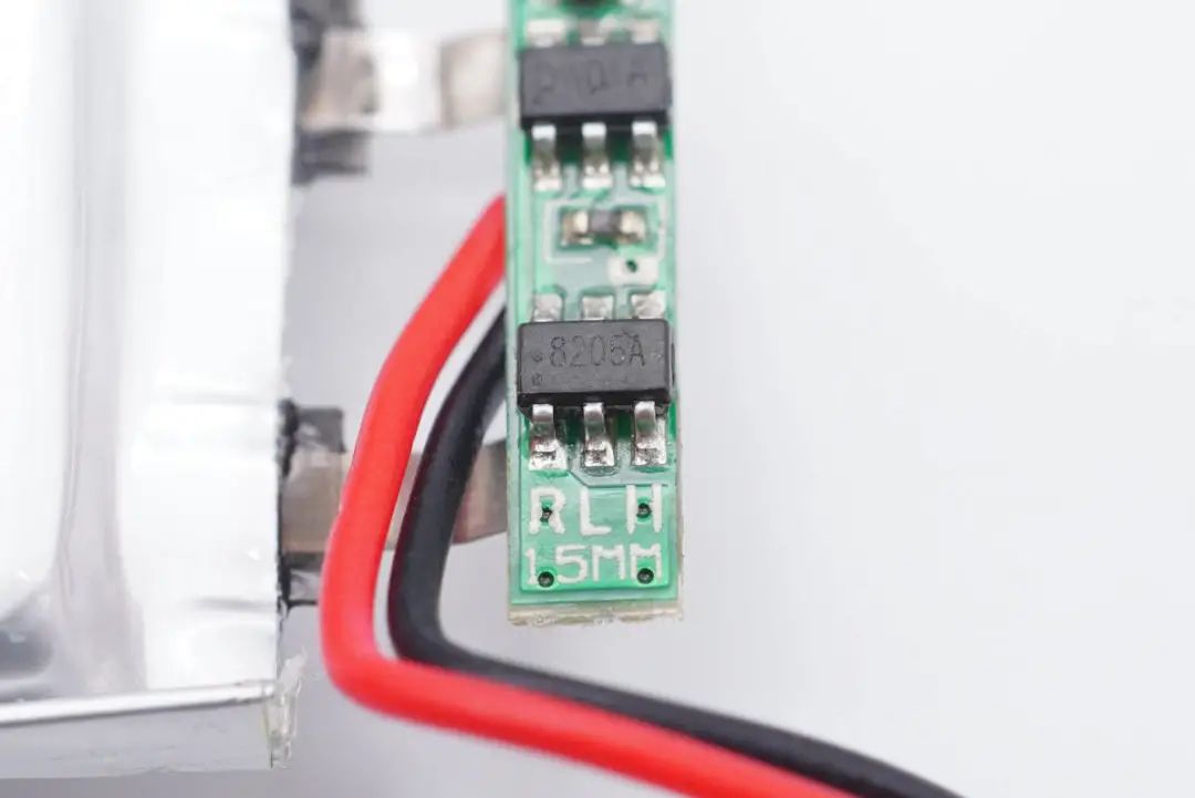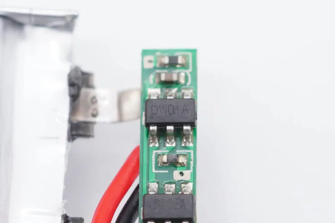 電芯頭部設有一塊保護小板,小板上設有鋰電保護芯片和MOS管。