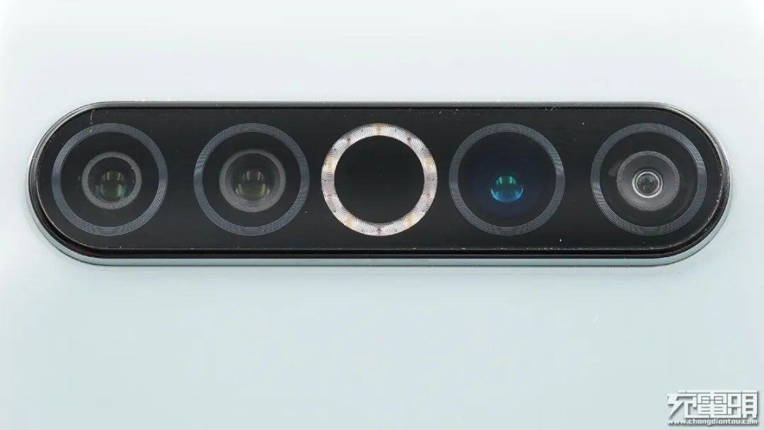 背面上端是6400W四攝全場景影像系統,從左往右依次是長焦相機,廣角相機,3D深感探測器和超廣角相機,中間白色圓環為內置閃光燈。