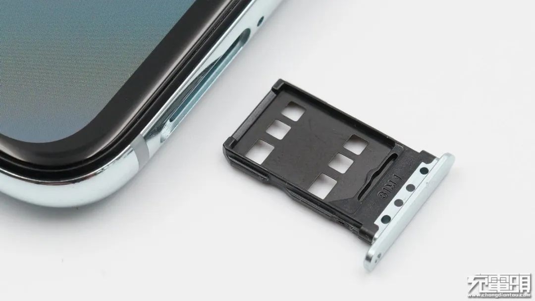SIM卡座特寫,卡槽采用正背面設計,支持雙卡雙待的同時節省空間。