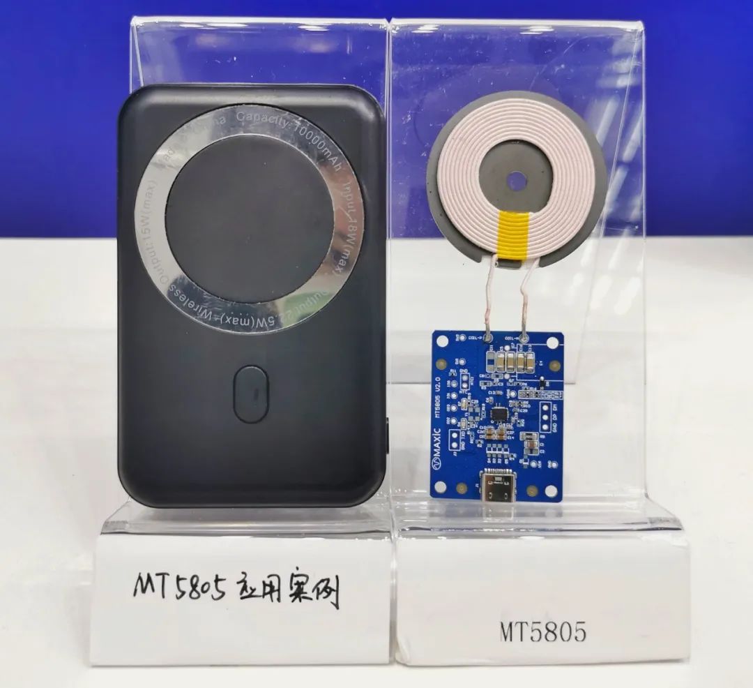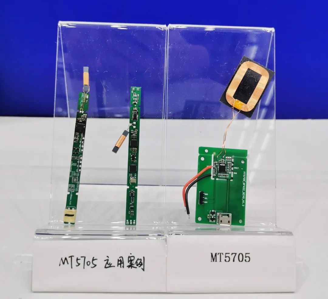 發射端芯片,為大家帶來了全集成、超低功率、高精度的MT5805,并在現場準備了內置MT5805的磁吸充電寶(自啟動應用,速度更快,功耗更低),以便廣大客戶可以更加直觀地感受該芯片的實際應用效果。