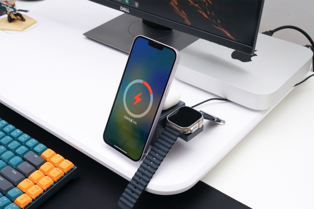 這款三合一無線充電器通過了蘋果MFW和MFM雙認(rèn)證,支持iPhone12-14系列15W 、Apple Watch及AirPods 5W無線快充。這對(duì)蘋果全家桶用戶來說,無疑是喜事一件,充電體驗(yàn)得到顯著提升。