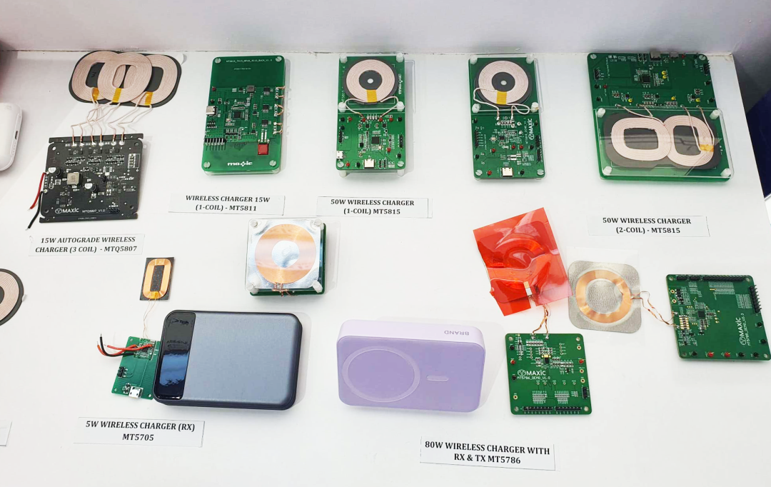 無線充電產品重點展示了全功率段無線充電解決方案,滿足大功率(專為手機無線充電而生的80W大功率Rtx芯片MT5786)、中小功率(15W All-in-One RTX/TX解決方案MT5706+MT5805)及車規級(15W車載無線充電芯片MTQ5807)等多功率段,適用TWS耳機、手表、電動牙刷、手機、PAD、移動電源、無線充電器、汽車電子等多終端產品應用。