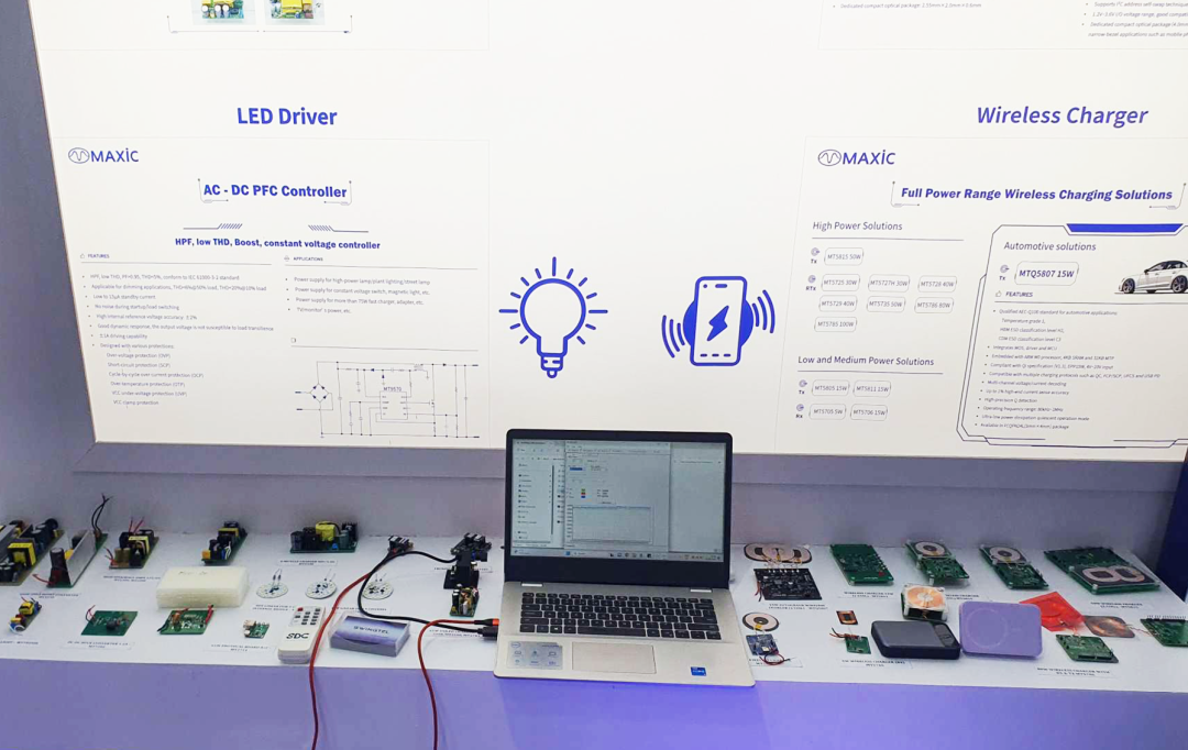 美芯晟也受邀出席此次展會,為大家帶來了無線充電、AC-DC、光傳感器、恒流驅動四個產品系列最新解決方案。