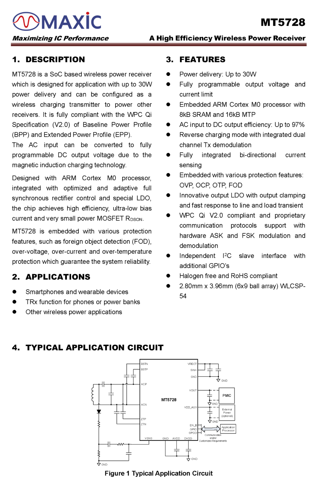 MT5728支持過壓、過流、過溫等多種保護功能,支持I2C接口和可配置的GPIO接口,采用WLCSP54封裝,可廣泛應用于手機、充電寶、平板電腦等電子設備。