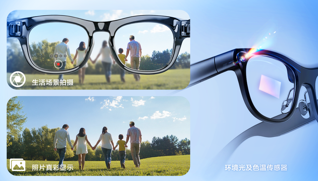 在 AI 眼鏡中,環(huán)境光感知是實(shí)現(xiàn)智能、無縫用戶體驗(yàn)的關(guān)鍵,美芯晟環(huán)境光及色溫傳感器作為一個(gè)高度集成的 RGB 顏色和閃爍頻率檢測(cè)傳感器,主要扮演了“環(huán)境感知者”和“顯示調(diào)節(jié)者”雙重角色。它通過精確感知周圍環(huán)境光照條件,為 AI 眼鏡的自動(dòng)顯示亮度調(diào)節(jié)、真彩顯示、防頻閃拍照以及情境感知 AI 交互提供了至關(guān)重要的數(shù)據(jù)基礎(chǔ)。