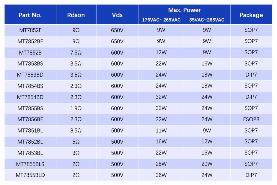 ■ 可以和老一代APF非隔離芯片MT7842B系列及同類競品系列進行直接替換,不需焊接COMP電容、RC補償,不需要重畫PCB。